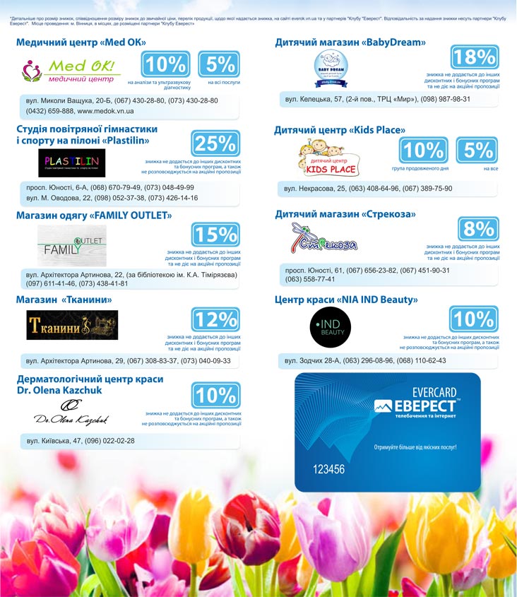 Купуйте з легкістю улюблені речі та робіть приємне близьким з «EVERCARD» Зустрічайте нових ПАРТНЕРІВ «Клубу ЕВЕРЕСТ»: